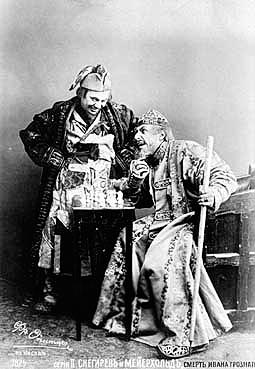 В 1908 г. директор императорских театров В. А. Теляковский храбро позвал лидера тогдашнего авангарда в цитадель консерватизма, в Александринку. Здесь Мейерхольд работал вплоть до Октября (20 постановок). Вражда к современной рутине парадоксально привела его к увлечению глубинными традициями, техникой и идеями старинного театра. Он осуществил грандиозную, стилизующую зрелища времен Короля-солнца постановку «Дон Жуана» Мольера (1910). В те же годы были поставлены Вагнер и Рихард Штраус в императорском Мариинском театре, шли эксперименты в Башенном театре («Поклонение кресту» Кальдерона, 1910), в Доме Интермедий («Шарф Коломбины» Шницлера и Донаньи, 1910). В 1914 г. возникает Студия на Бородинской, воодушевленная Гоцци и commedia dell?arte; здесь ставят вечера импровизаций и выпускают журнал «Любовь к трем апельсинам» (Мейерхольд сродняется со своим псевдонимом, взятым из Гофмана: доктор Дапертутто). В журнале он публикует свою уничтожающую статью о программной работе Первой студии: «Сверчок на печи, или У замочной скважины». Притом, заслышав об интересе Станиславского к этому изданию, Мейерхольд любезно шлет ему вышедшие номера.