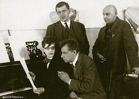 Вникать в дальнейшее противостояние Мейерхольда и Художественного театра значило бы разбираться в коренных вопросах театра XX века. Пропуская даже такие моменты, как параллельные (осуществленные и неосуществленные) работы Мейерхольда и МХТ над одними и теми же пьесами («К звездам» и «Жизнь Человека» Л. Андреева, «Пелеас и Мелисанда» М. Метерлинка, «У царских врат» К. Гамсуна, «Живой труп» Л. Толсто?го, «Зеленое кольцо» 3. Гиппиус — до «Самоубийцы» Н. Эрдмана) и взаимодействие Мейерхольда с учениками Станиславского (Вахтангов, М. А. Чехов), — ограничимся пунктиром событий.
