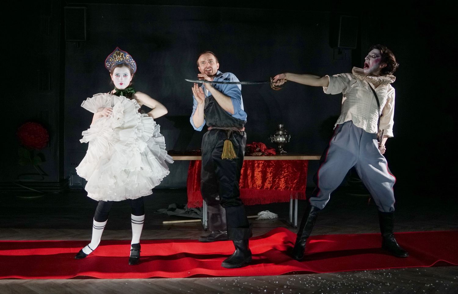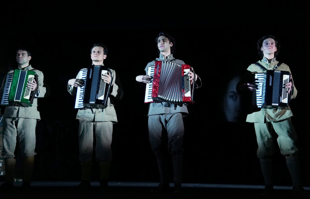 На сцене МХТ дебютировал в 2021 году в спектакле Сергея Женовача «В окопах Сталинграда».