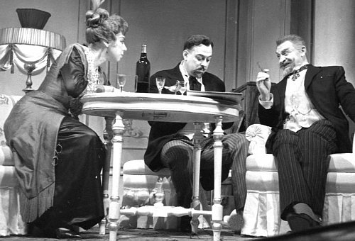 1963 год, оттепель, но Художественный театр пребывает в кризисе. При этом мхатовская труппа полна таких мощных актеров, что в спектакле по Горькому социальность пьесы перекрывается чисто человеческими, близкими зрителю темами. Борис Ливанов в роли Егора Булычова играет отчаяние человека, находящегося у последней черты, с такой силой, что ему трудно не сострадать. Его герой мечется по замкнутому кругу своей жизни, и не может ни вырваться из него, ни примириться с этим.