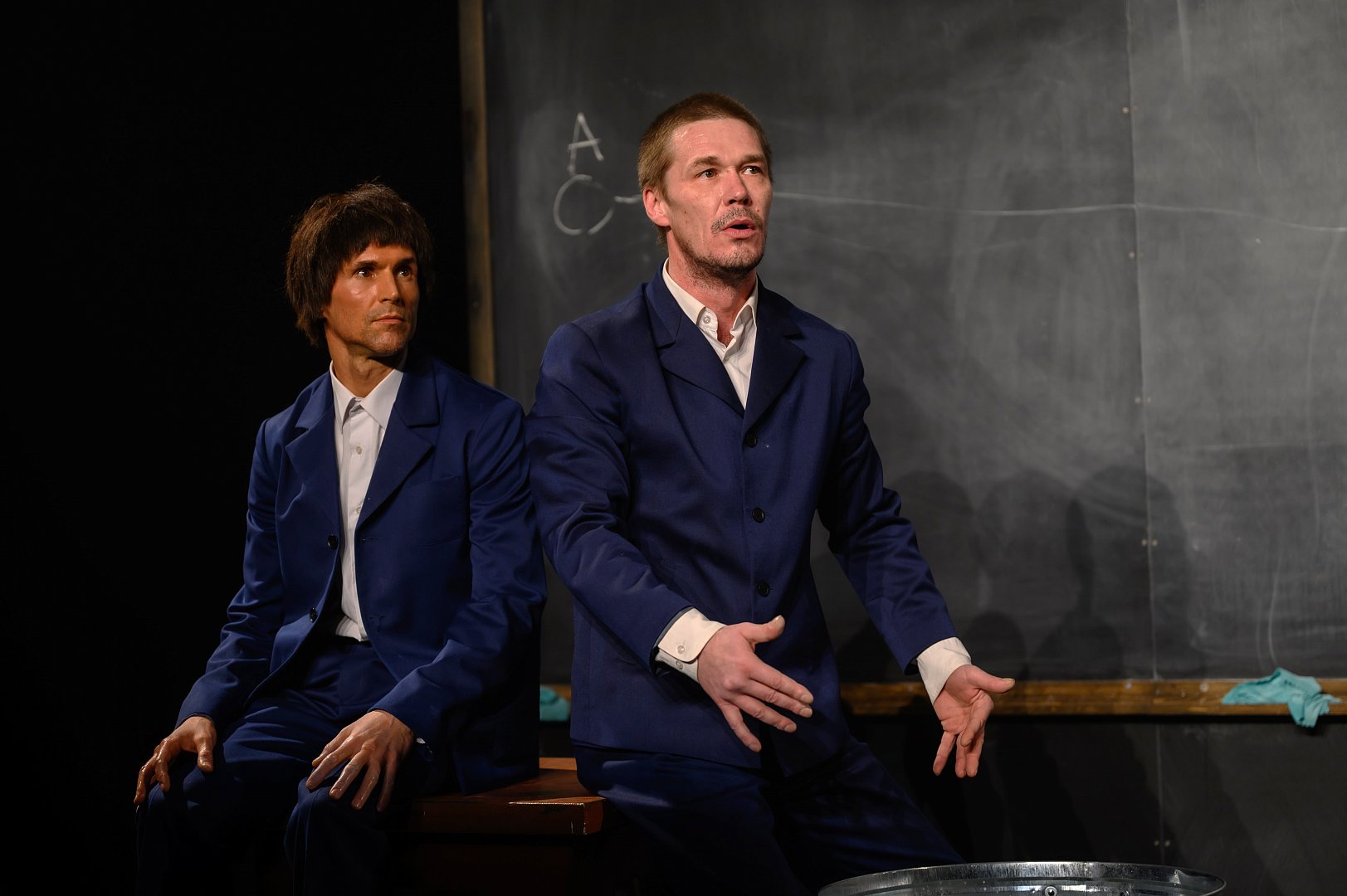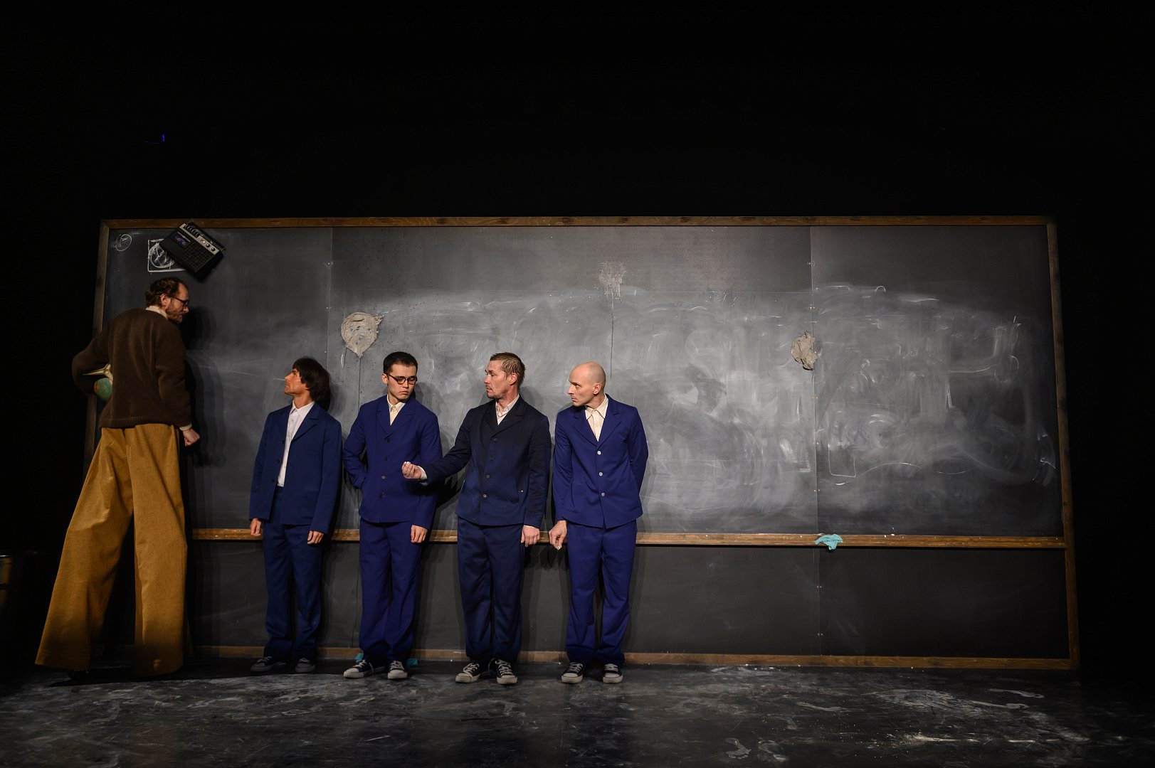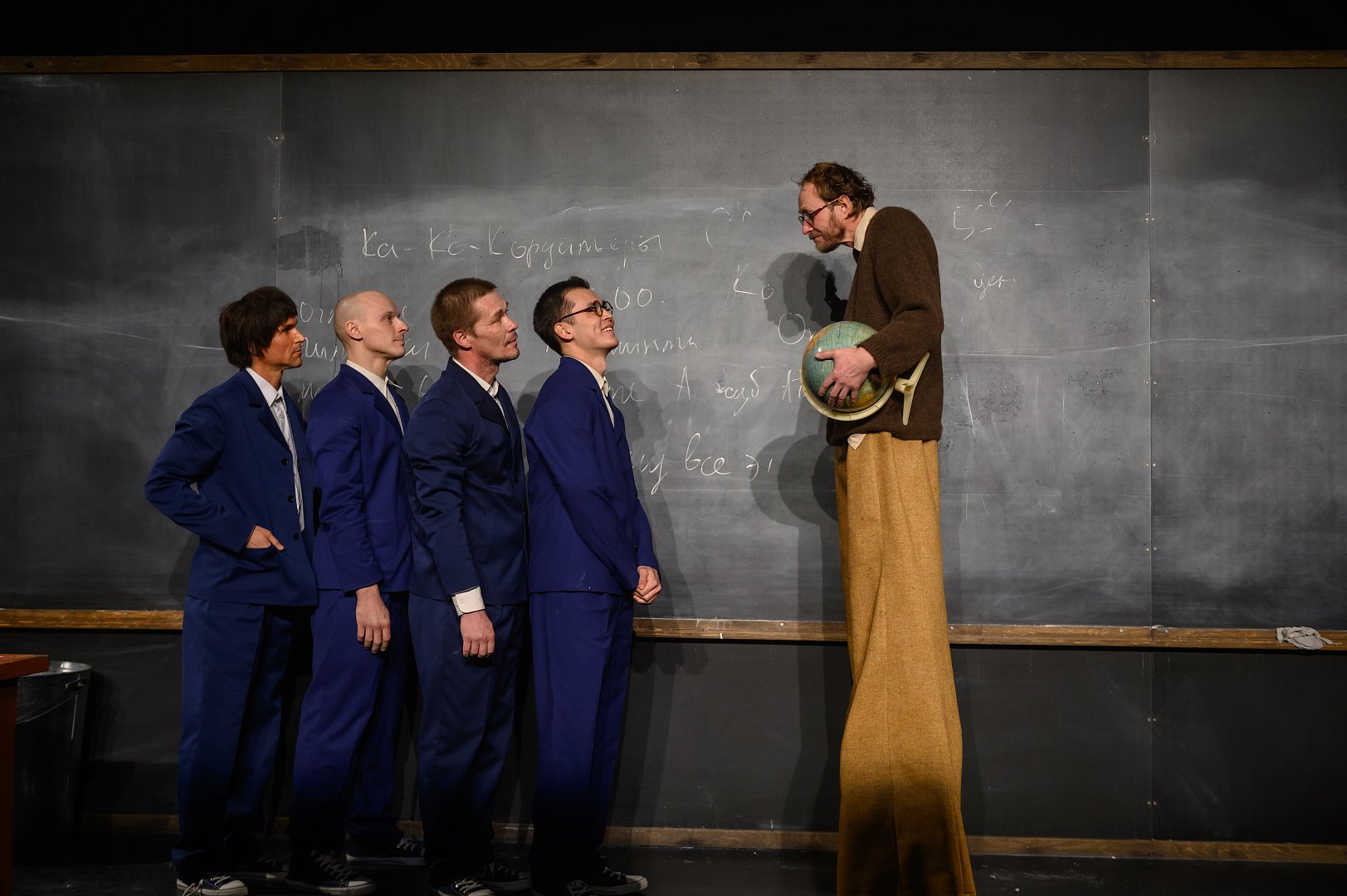 Режиссёр Денис Азаров: «Пересказать сюжет "Школы для дураков" невозможно, поэтому наш спектакль в некотором роде бессюжетен, мы пытаемся передать в нём ощущения от книги, её атмосферу. Место действия – школа. Странная школа, где преподают вовсе не географию с математикой. Наш герой, ученик этой школы, стремится постичь мир, но не через быт (пижаму, щи, колбасу…), а по-настоящему. Возможно, он взрослый, который вспоминает, что с ним было. Или мальчик, у которого произошло обострение после продажи дачи. Или мальчик, у которого произошло обострение после смерти учителя. А может, он мальчик, который придумал всё это, скучая в больнице. А может, у каждого зрителя сложится свой сюжет…».